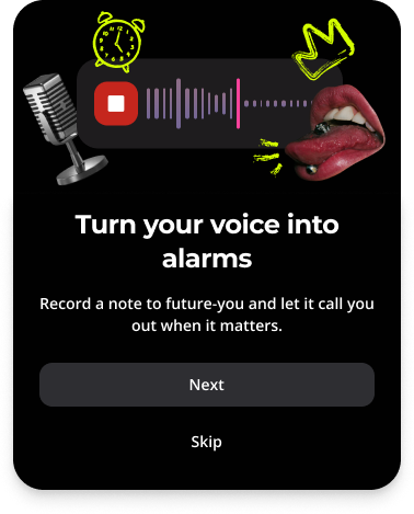 Record a note to future-you and let it call you out when it matters. Your voice, your rules.